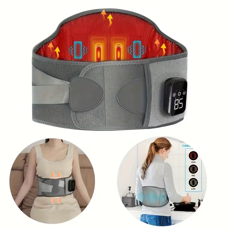 The Infrared Heating Waist Massager combines infrared heat, vibration, and red light therapy in a wearable belt design. It features USB charging for convenient, cordless use and provides adjustable support for the lumbar and lower back area.